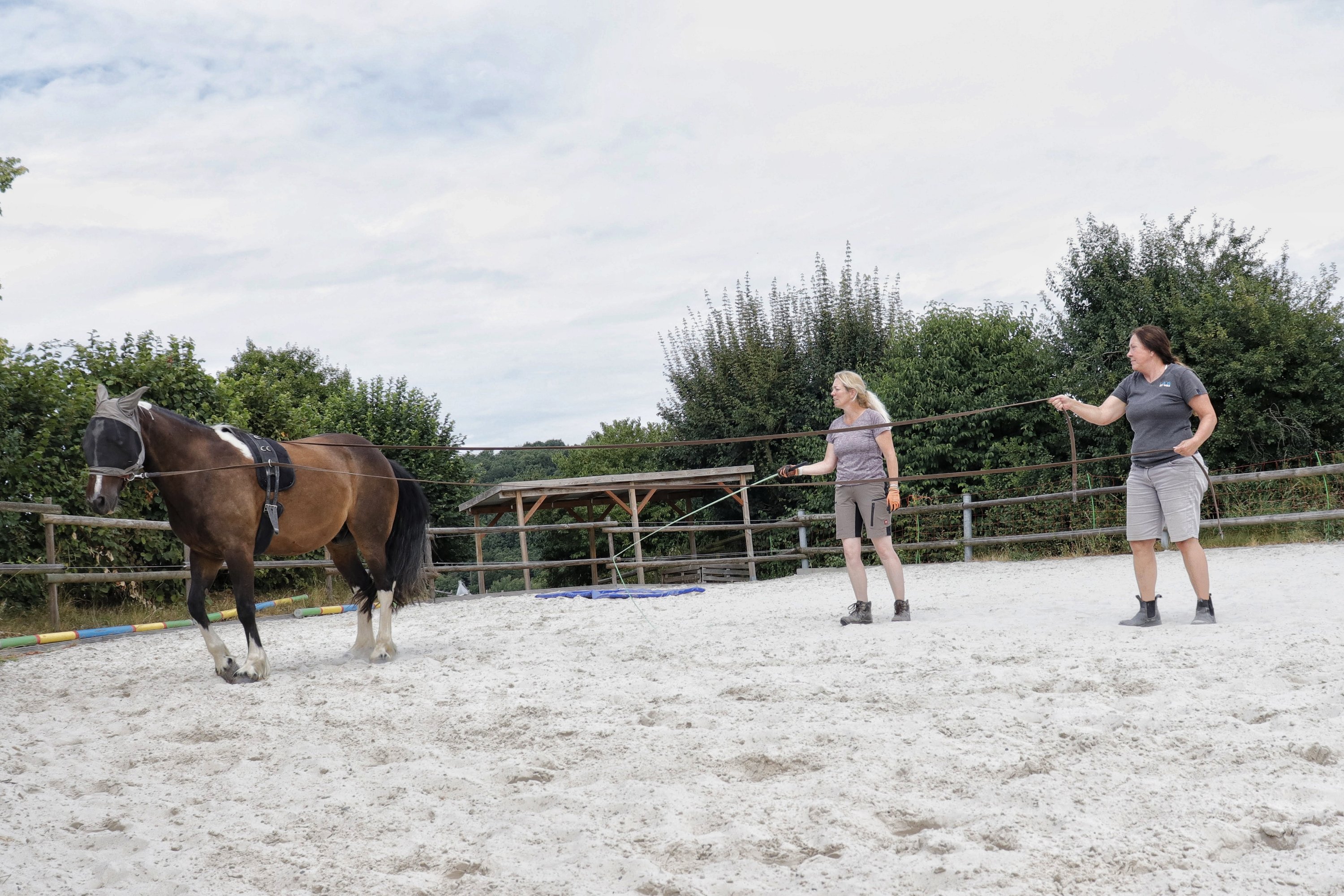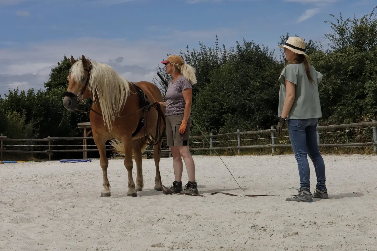 Auf einer sehr schönen Anlage mit ganz tollen Teilnehmern und Pferden. Bei bestem Wetter. 🙂